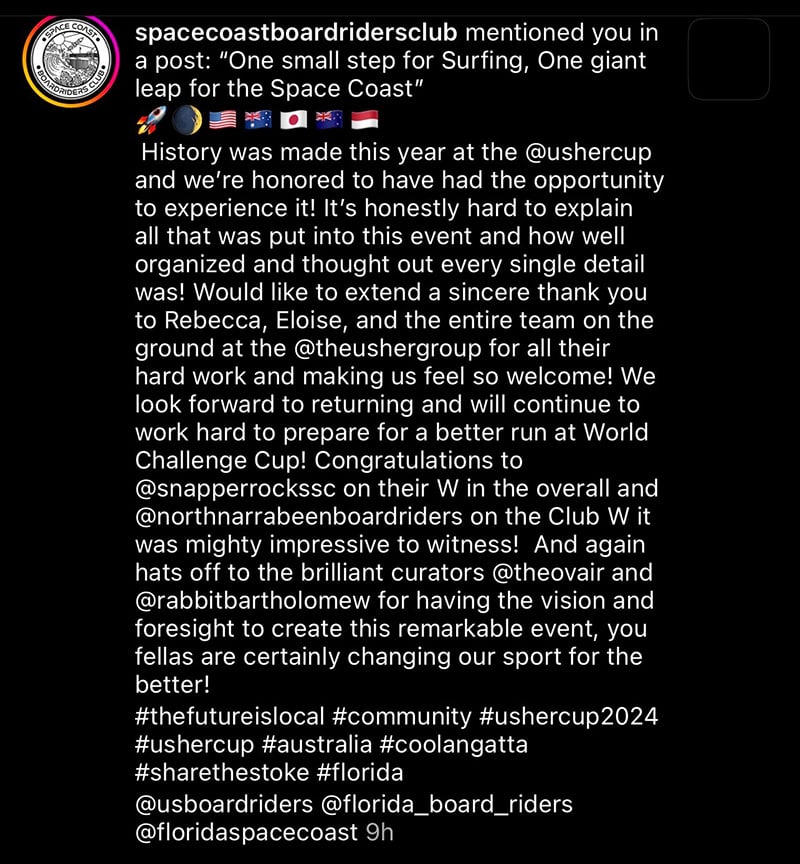 huge thank you to the @ushercup for putting on an amazing event that gets our community involved and the international boardrider clubs over here .. Moslty – a huge thank you for your contribution to local charities.